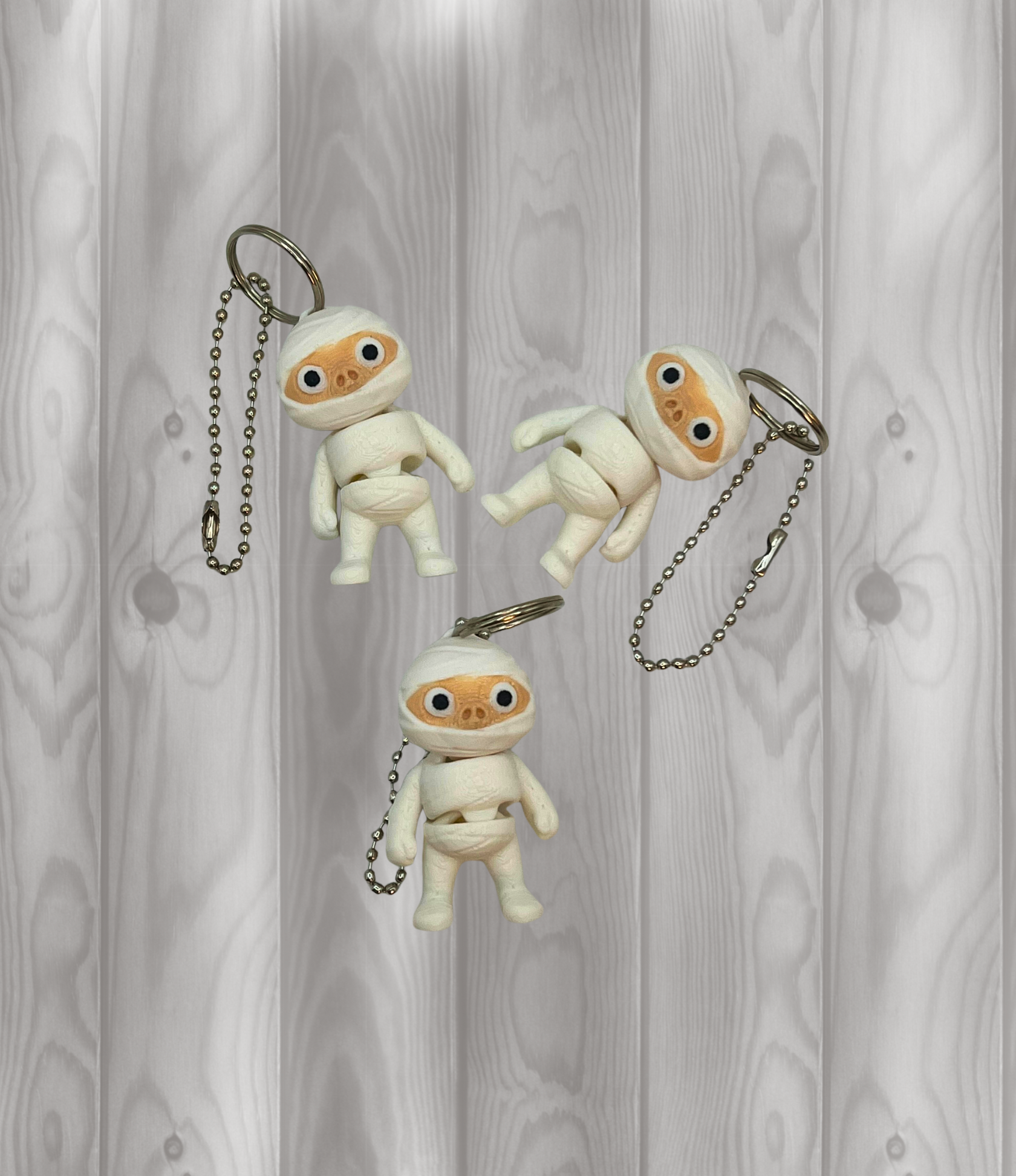 Diese kleine Mumie ist der perfekte Begleiter für alle, die es gruselig-süß mögen 👻. Der Schlüsselanhänger ist beweglich und bringt mit seinen wackelnden Gliedmaßen Spaß und Charme an deinen Schlüsselbund, Rucksack oder deine Tasche.